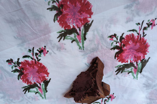 Floral Hand Block Printed Running Fabric Natural Dyed Dress Materiel HF6404