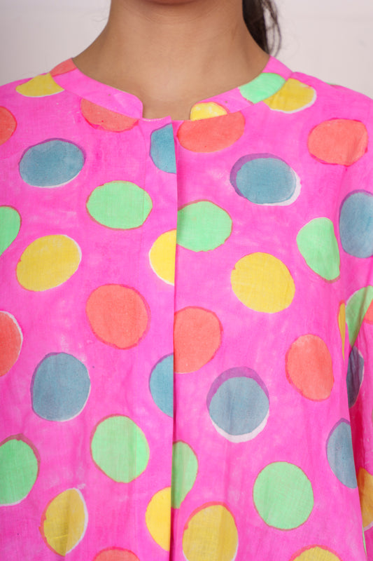 Pink Polka Dot Cotton Shirt Top-NFT148