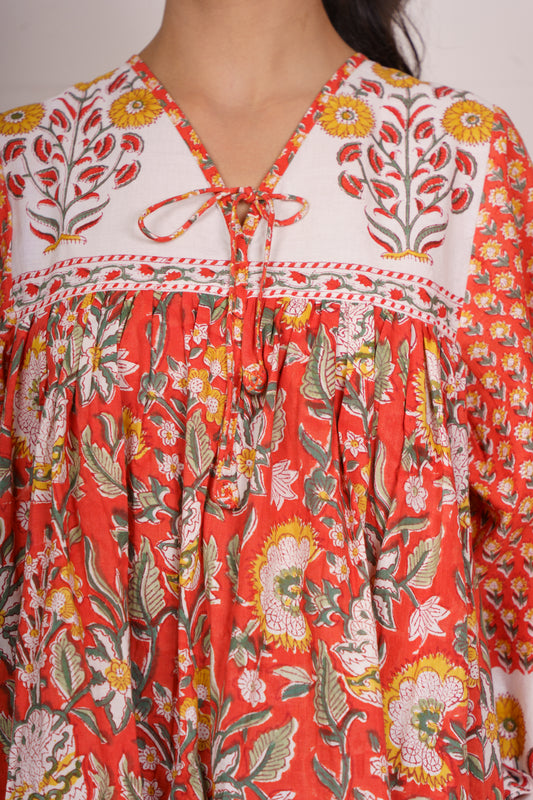 PEACH BLOCK PRINTED KAFTAN TOP-NVK541