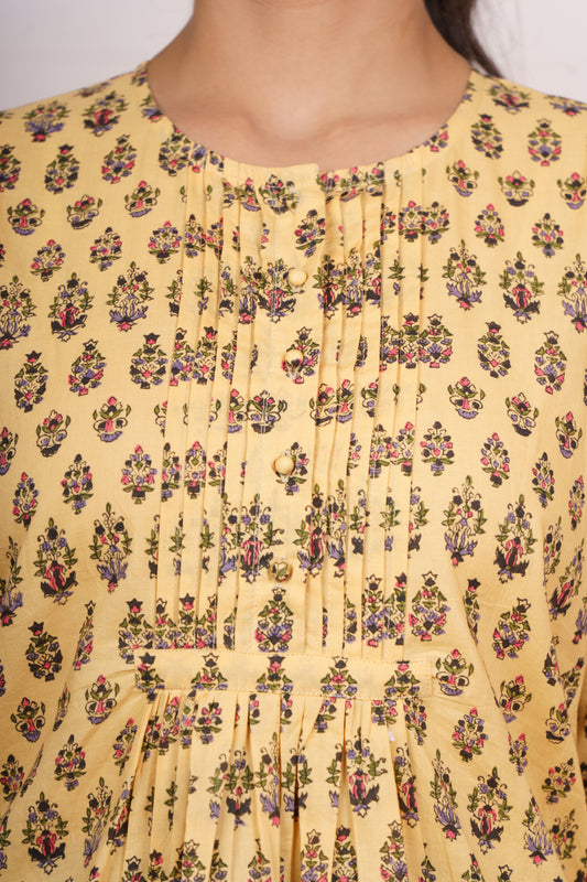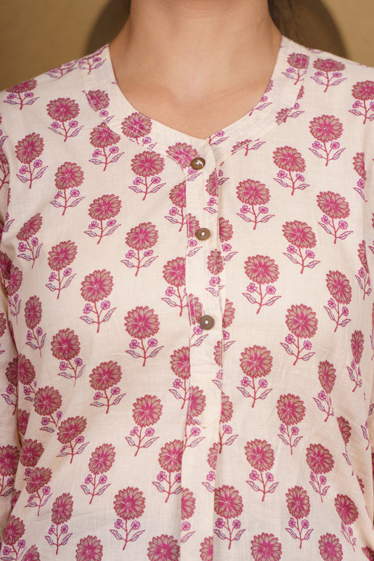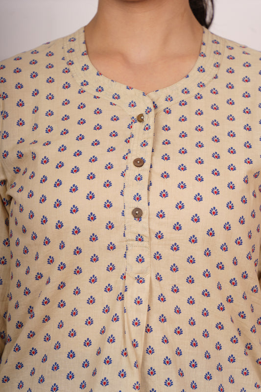 Off-White Floral Printed Cotton Kurti Top-NFT152