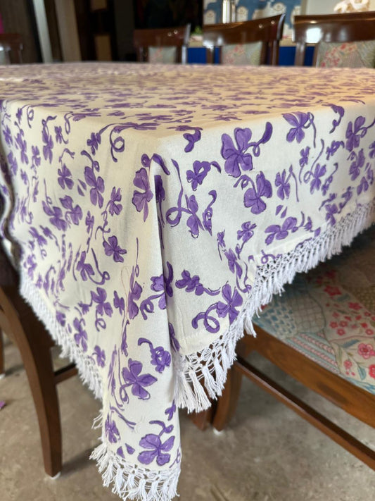 Purple Block Printed Dining Table Cover with Napkins-NFTC01