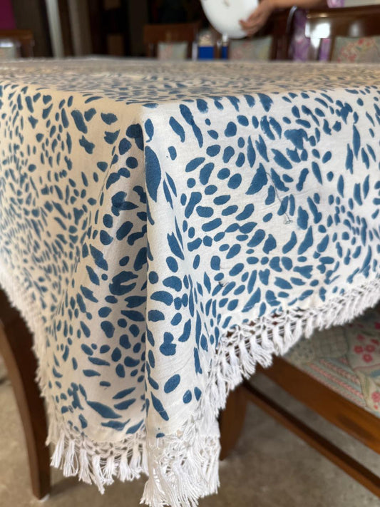 Blue Block Printed Dining Table Cover with Napkins-NFTC02