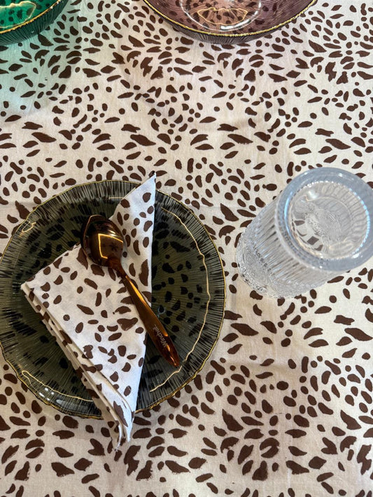 Brown Block Printed Dining Table Cover with Napkins-NFTC04