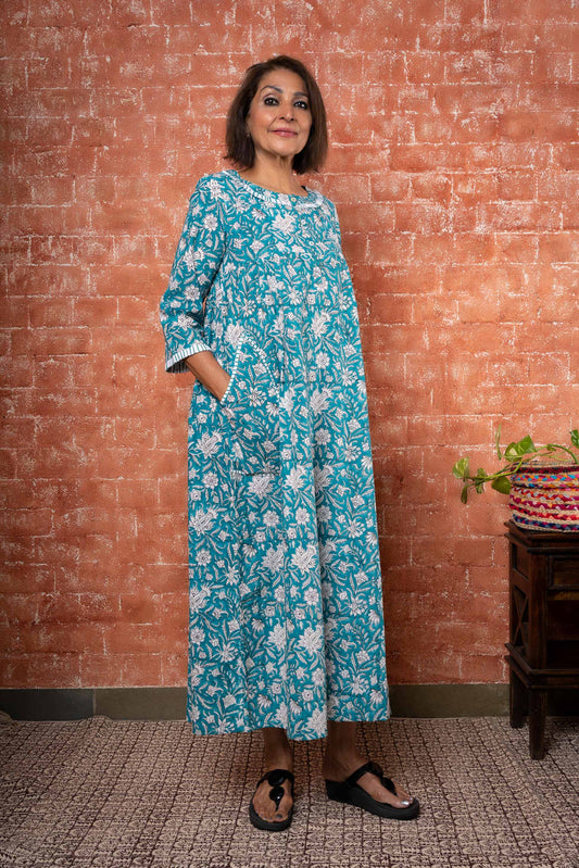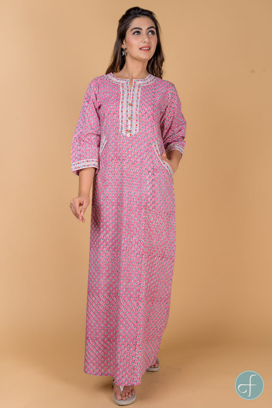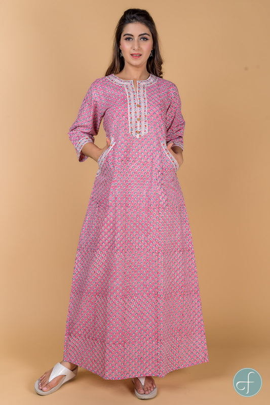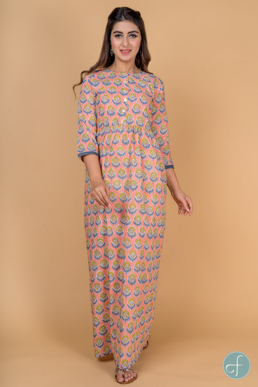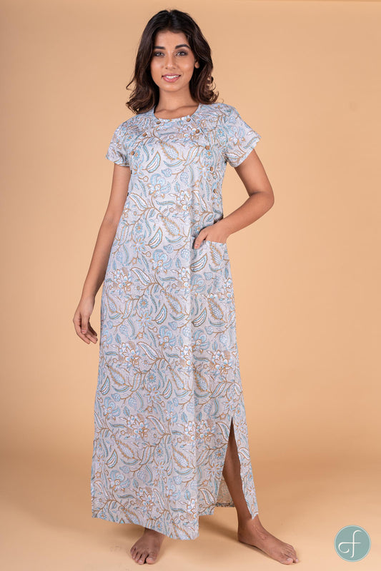FLORAL BLOCK PRINTED NIGHT GOWN-NG60