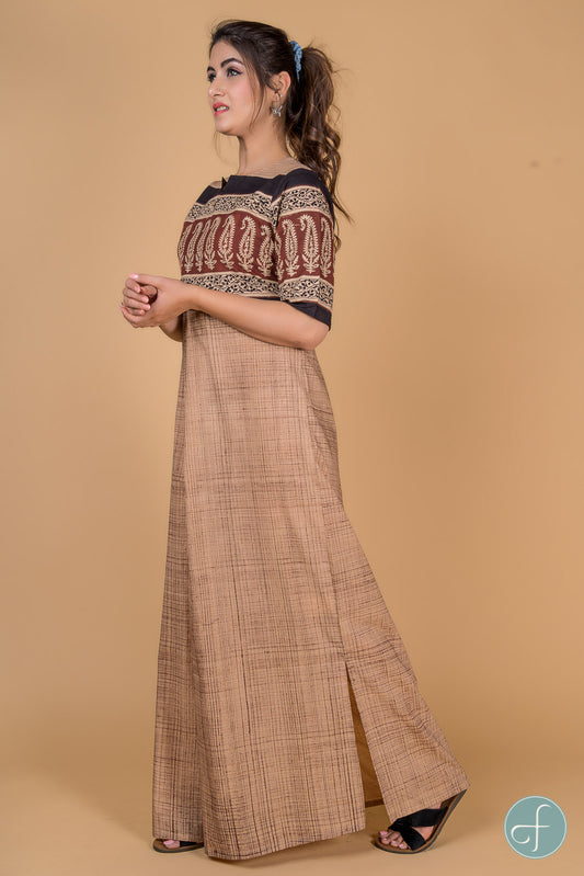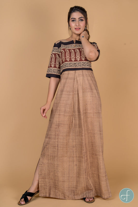 BROWN BRUSH BLOCK PRINT NIGHT GOWN-NG26