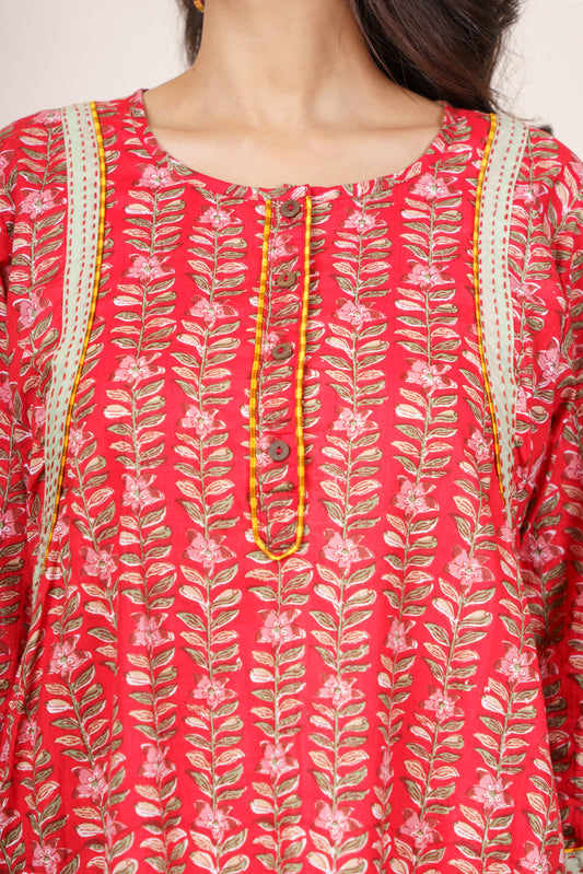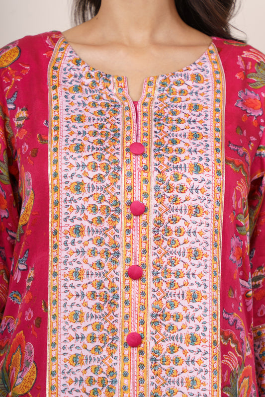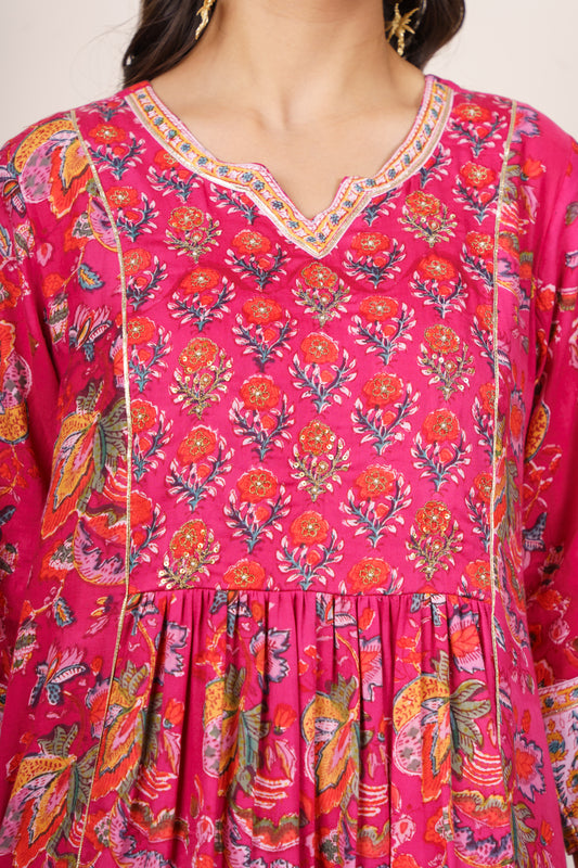 Fuchsia Floral Flared Cotton Kurta-KS840