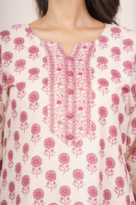 BestSellerCream Pink Floral Cotton Kurta-KS844