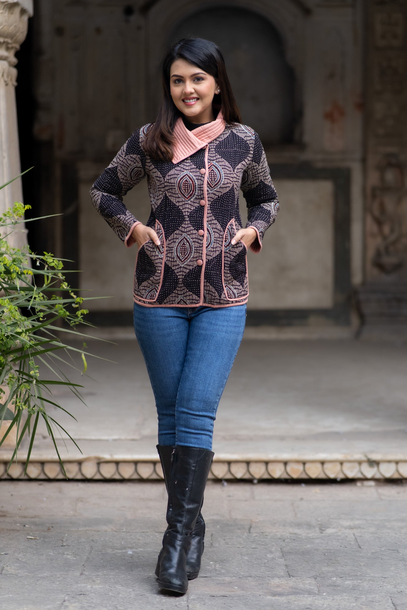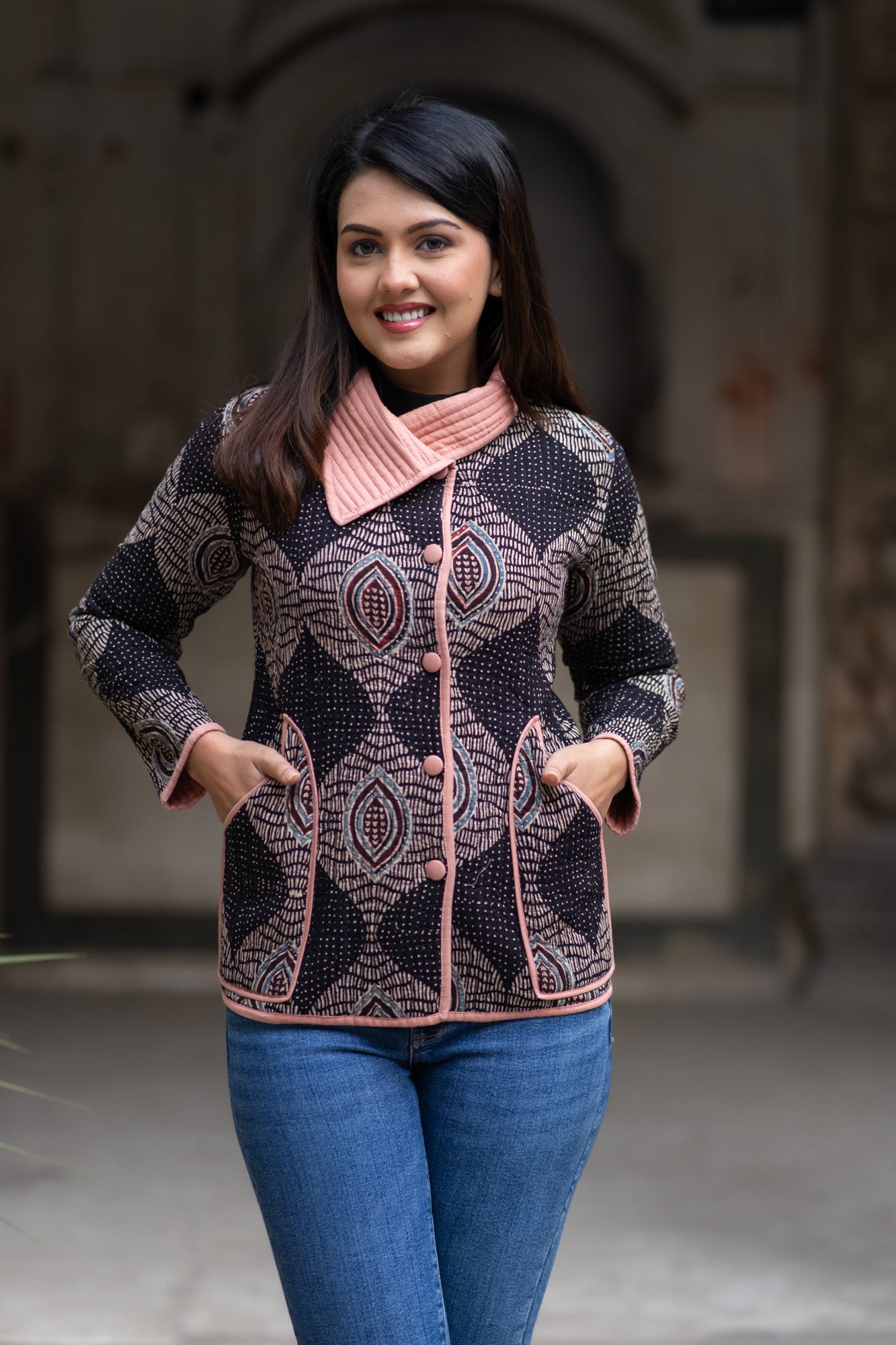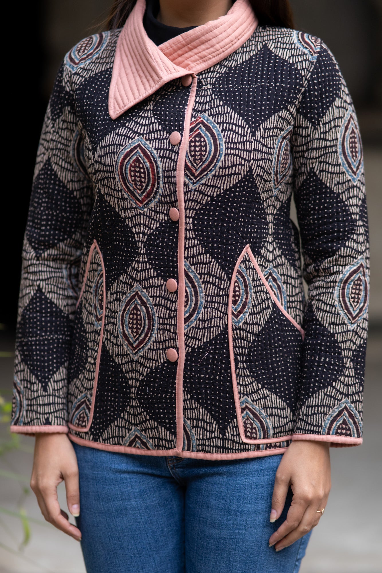 Ajrakh Bukhara Quilted Jacket-NVQJ573