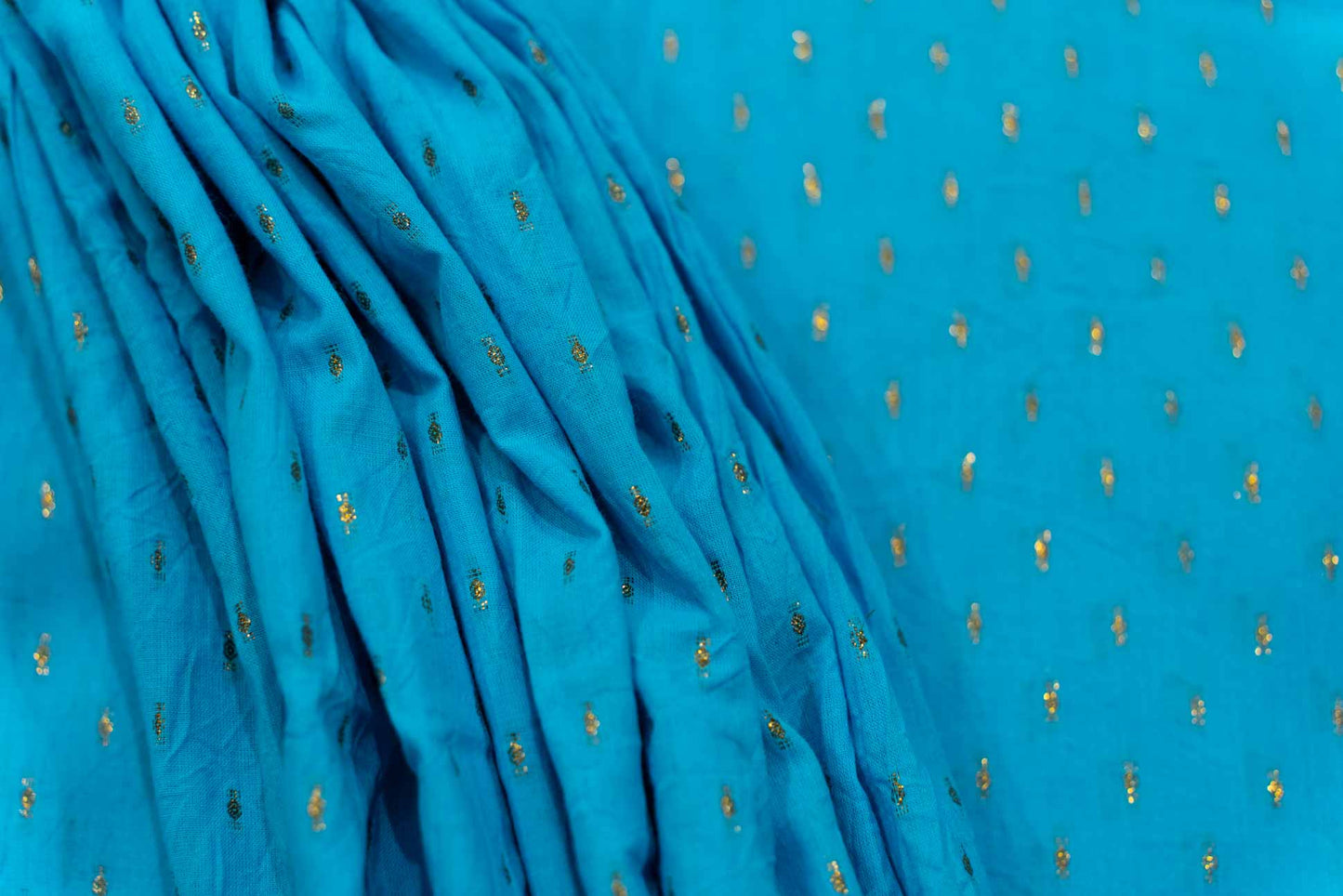 AZURE BLUE GOLDEN ZARI BOOTA COTTON FABRIC-HF5201
