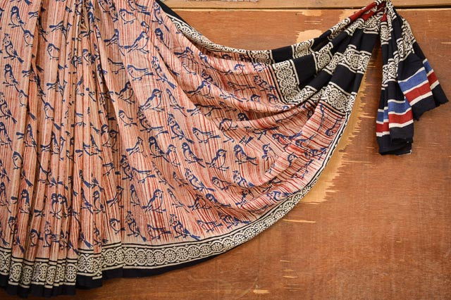 BIRD BAGRU PRINT COTTON SAREES-NVCBS106