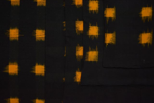 BLACK AND MUSTARD DOUBLE IKAT COTTON FABRIC -HF3905