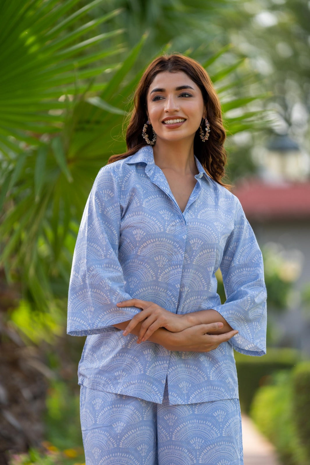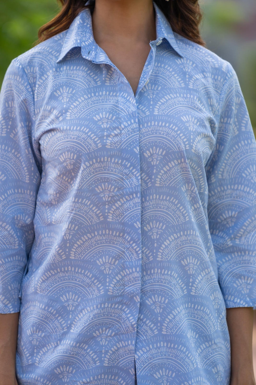 BLUE PRINTED SHIRT TOP-NFT136