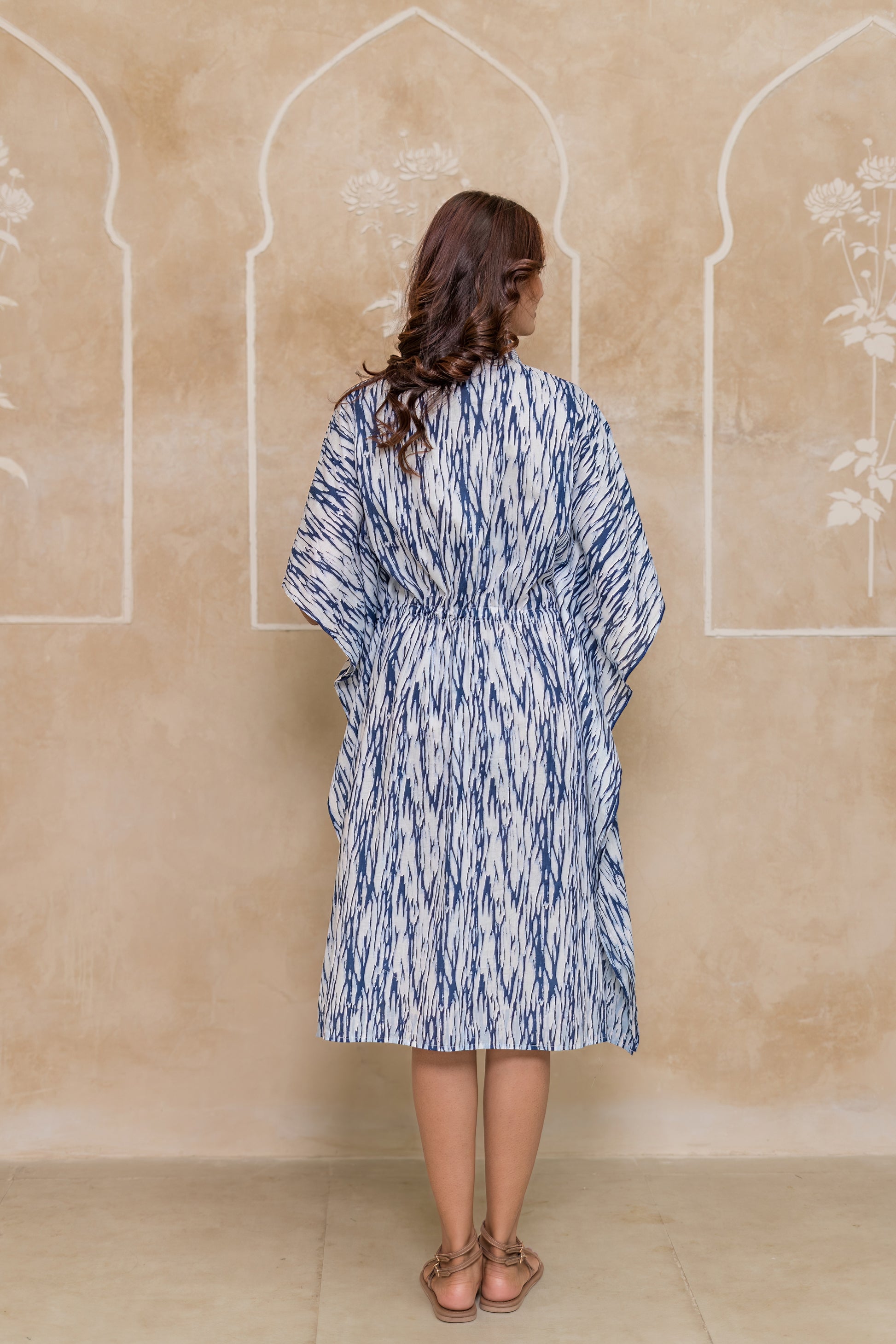Buy this blue and white hand block printed shibori kaftan dress for casual outings in a smart look.