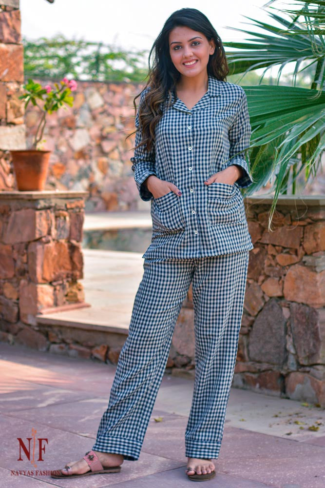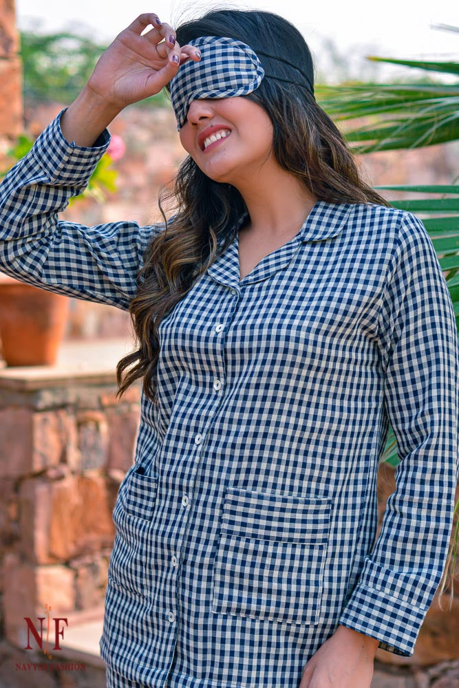 BLUE SMALL CHECKS COTTON NIGHT SUIT-NS61