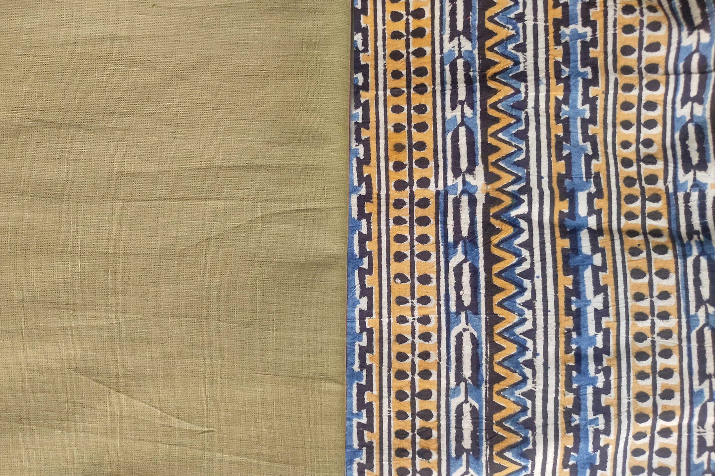 Hand block printed kurta and bottom fabric as a combo set. This soft mercerised cotton fabric is a perfect choice for getting kurta with palazzo/pant/salwar stitched. Price given above includes 1 meter piece of each fabric. You can increase the quantity according to your need.
