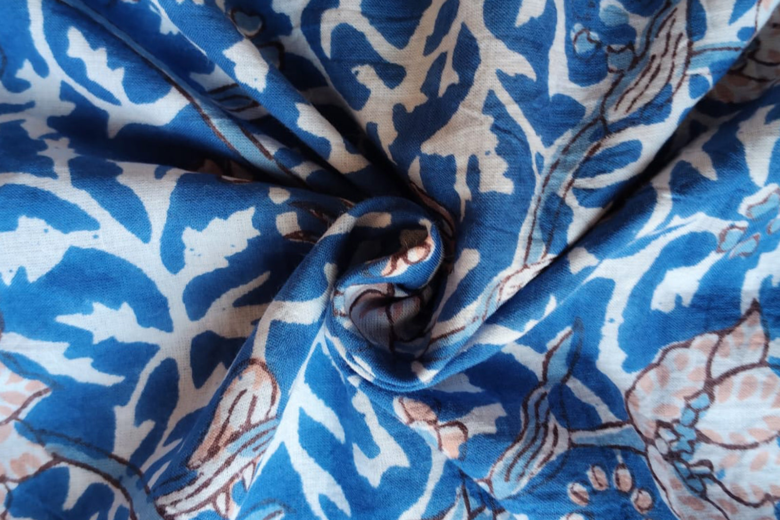 BLUE FLORAL HAND BLOCK PRINTED COTTON FABRIC-HF6436
