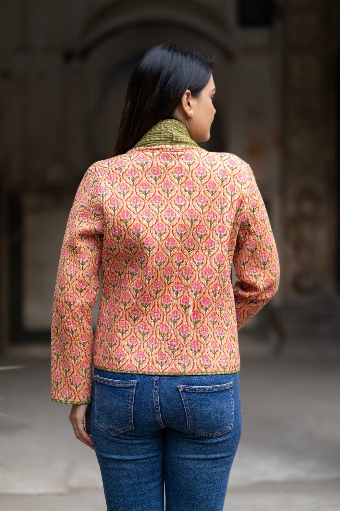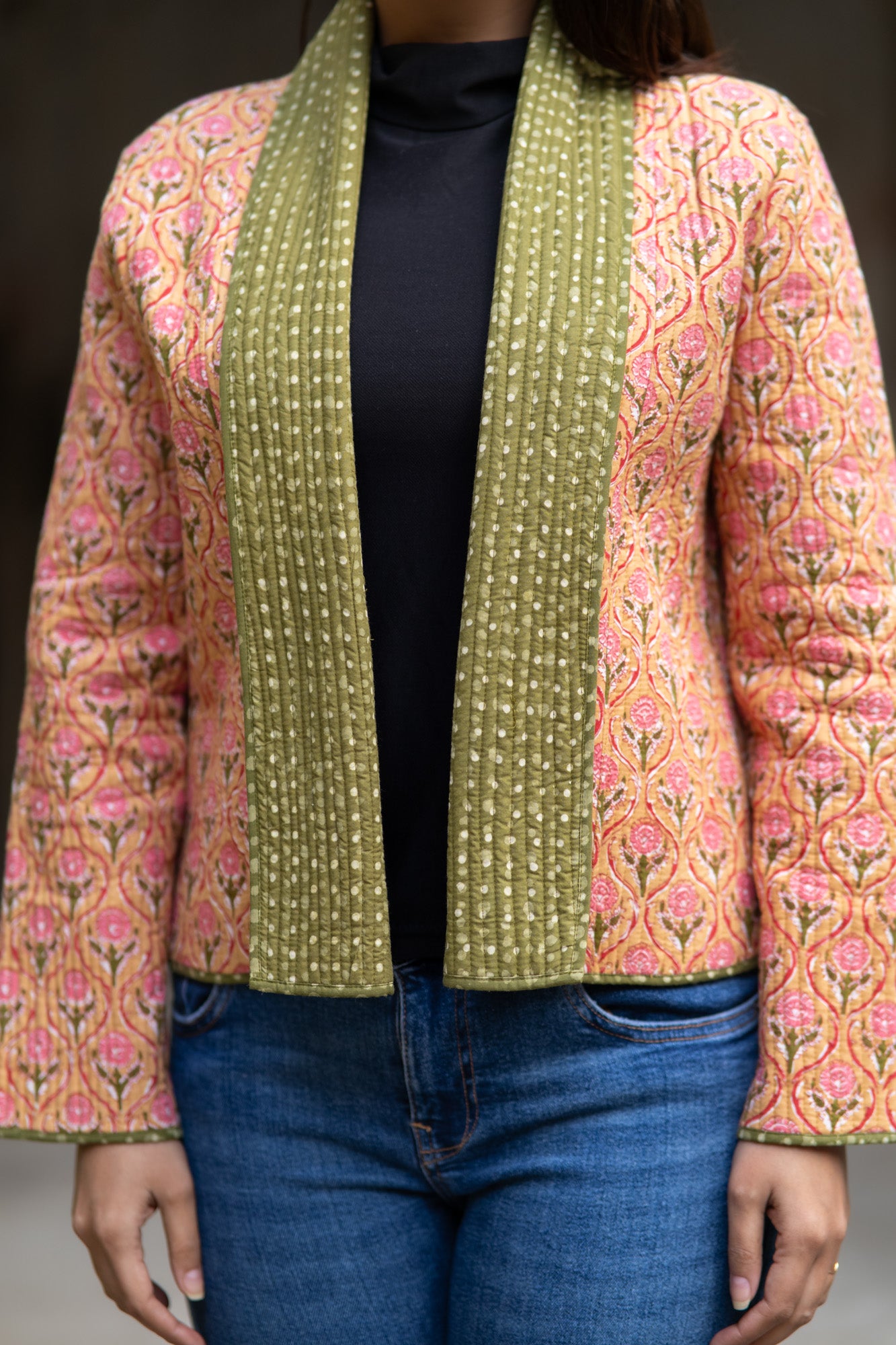Floral Quilted Reversible Front Open Jacket-NVQJ584