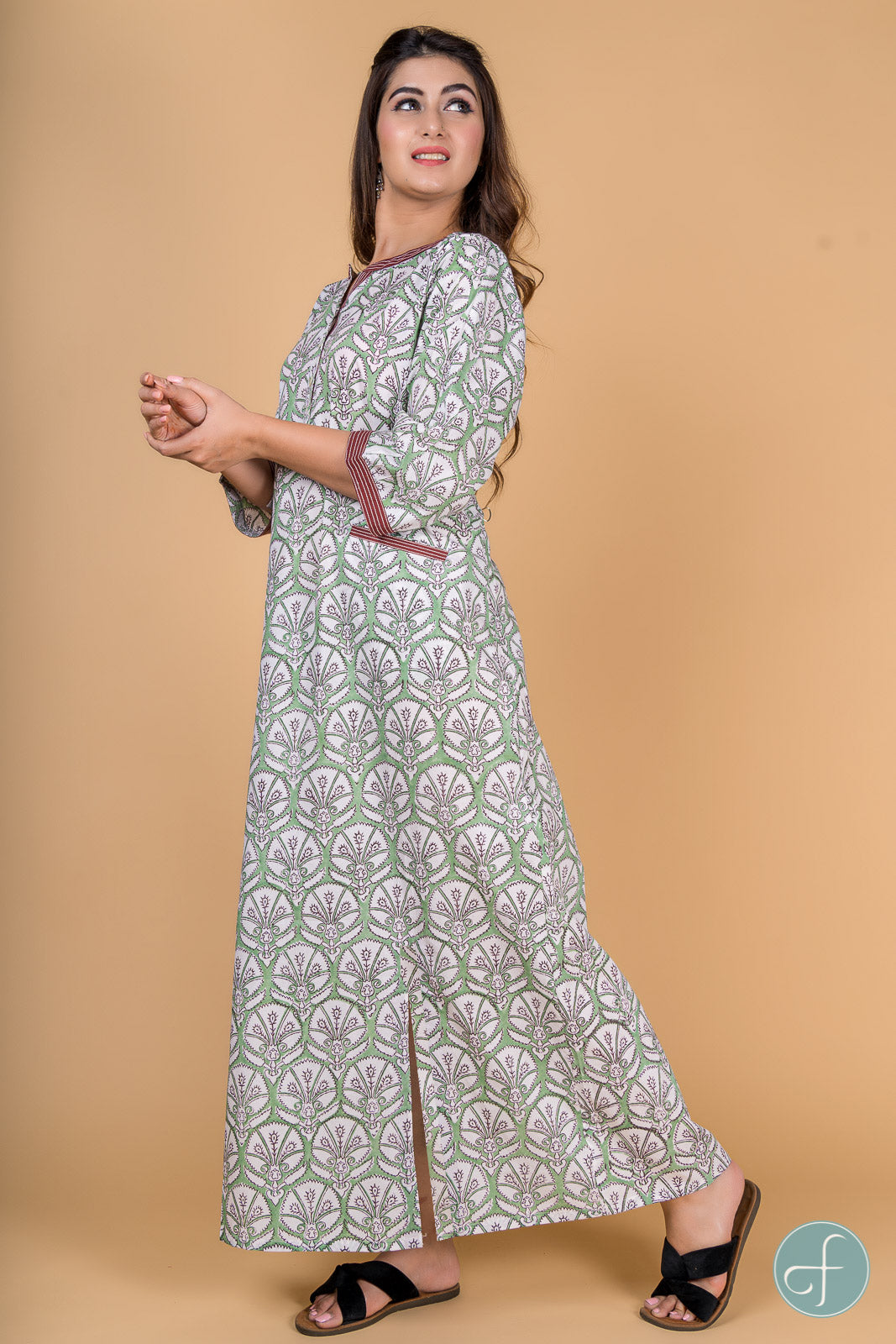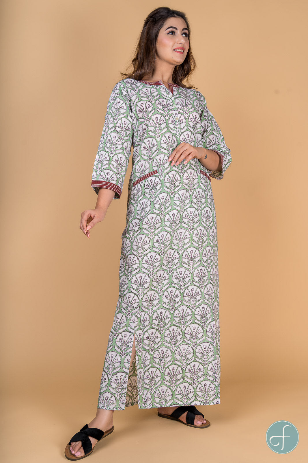 GREEN FLORAL BLOCK PRINT NIGHT GOWN-NG2