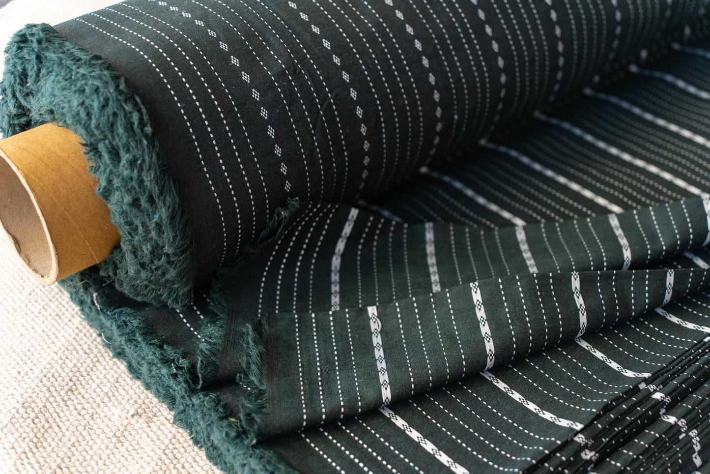 GREEN STRIPED KHARI COTTON BLEND DOBBY FABRI-NVHF6266