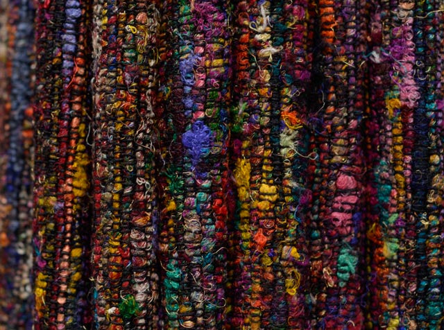 Completely hand woven multi color pure silk fabric from India. The fabric is popularly used for Jackets & home decor.