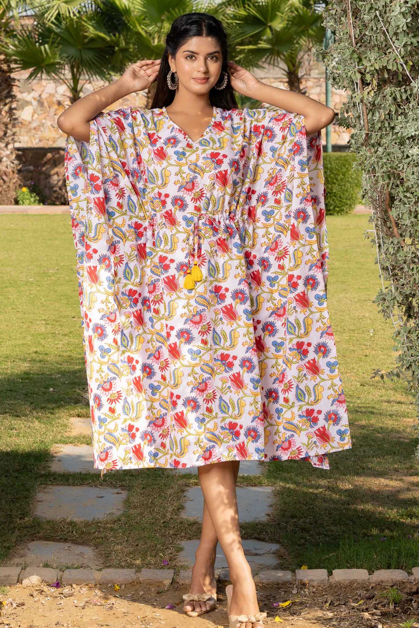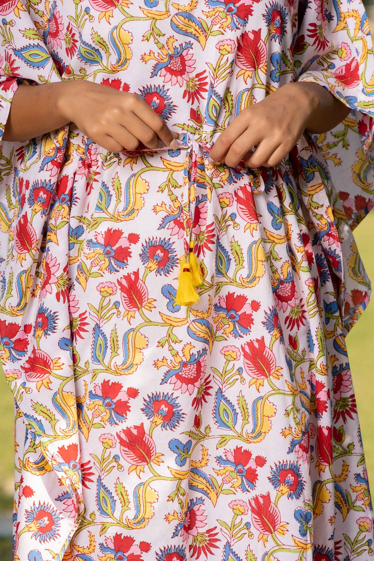 MULTICOLOR FLORAL PRINTED COTTON KAFTAN-NVK352