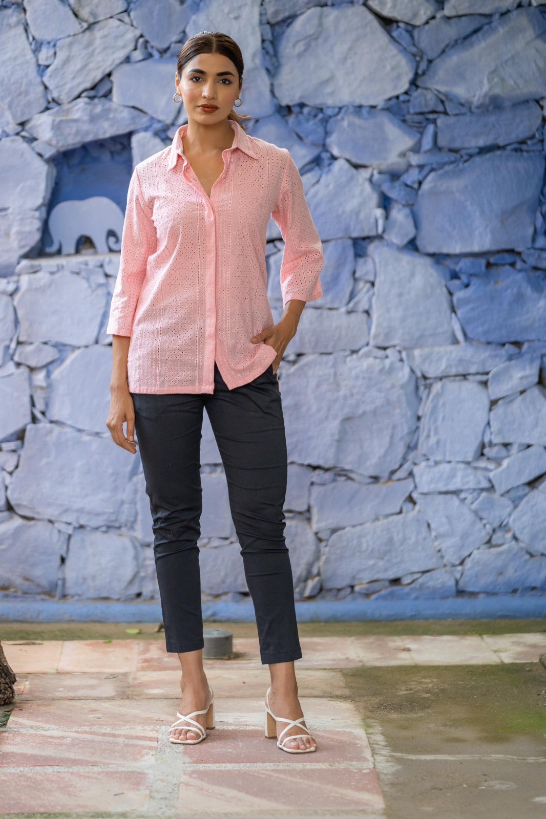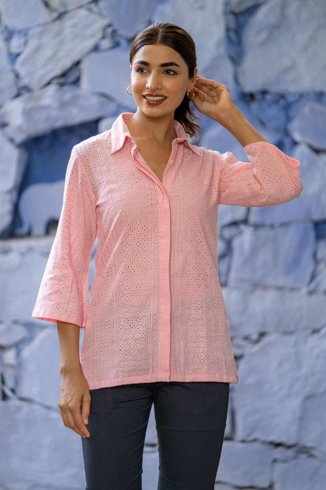 PINK EMBROIDERY SHIRT TOP-NFT137