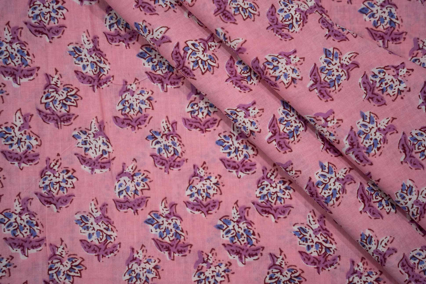PINK FLORAL BLOCK PRINT COTTON FABRIC-NVHF6144