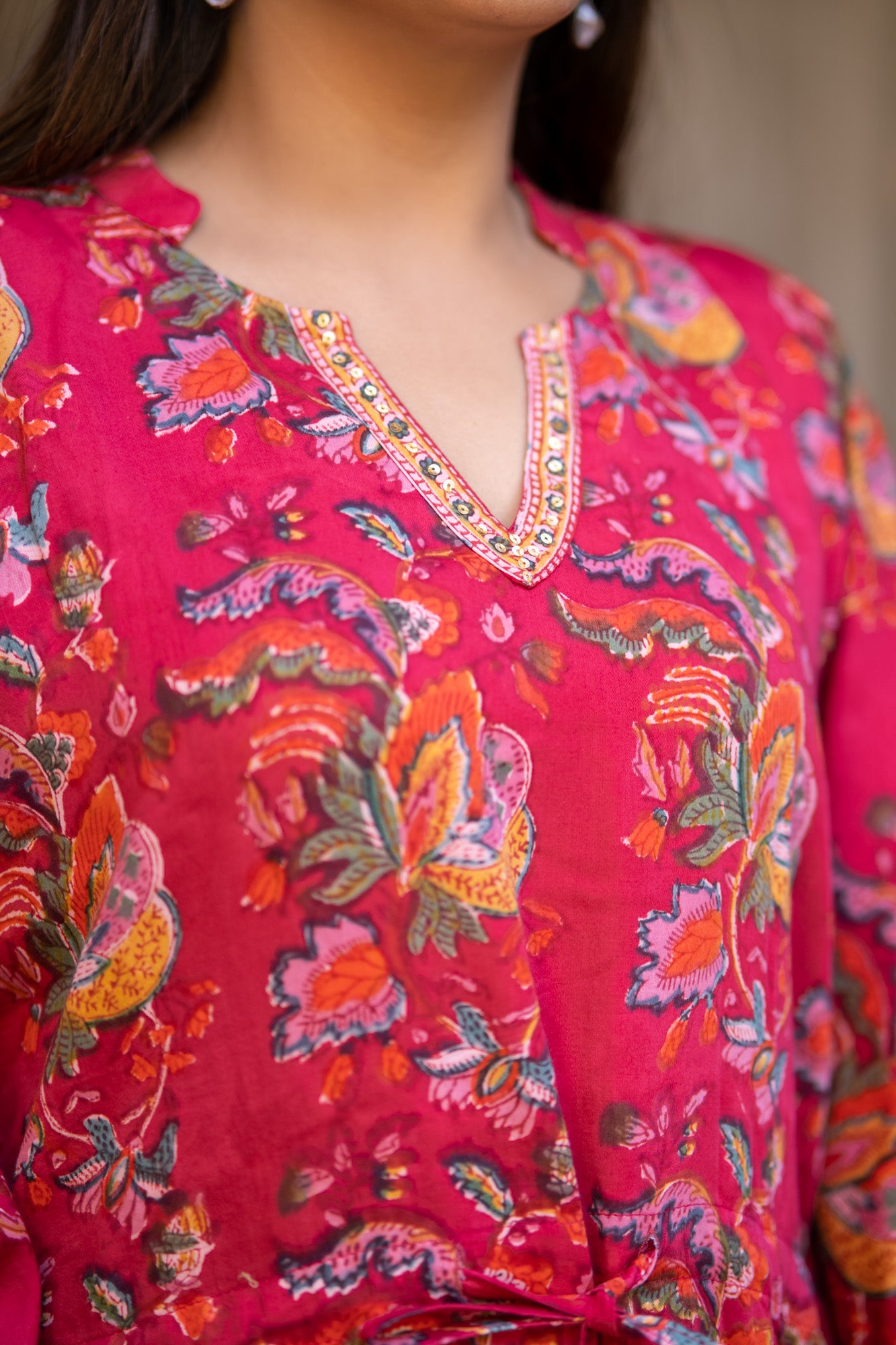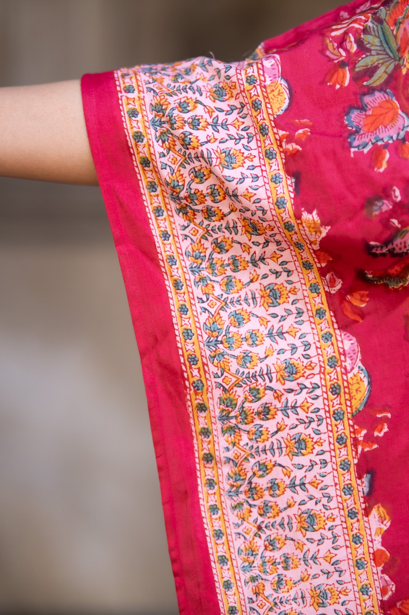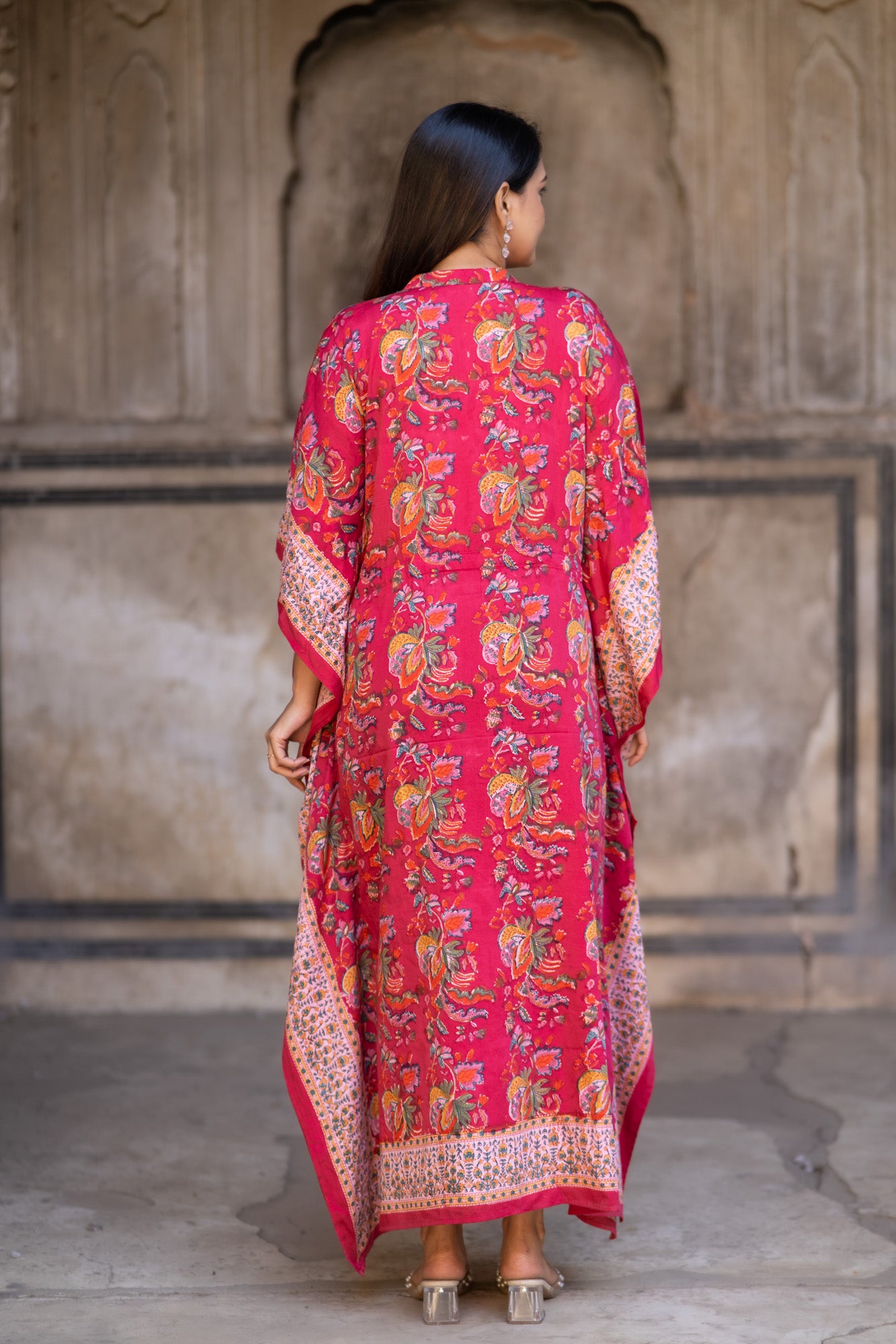 PINK FLORAL BLOCK PRINTED KAFTAN-NVK521