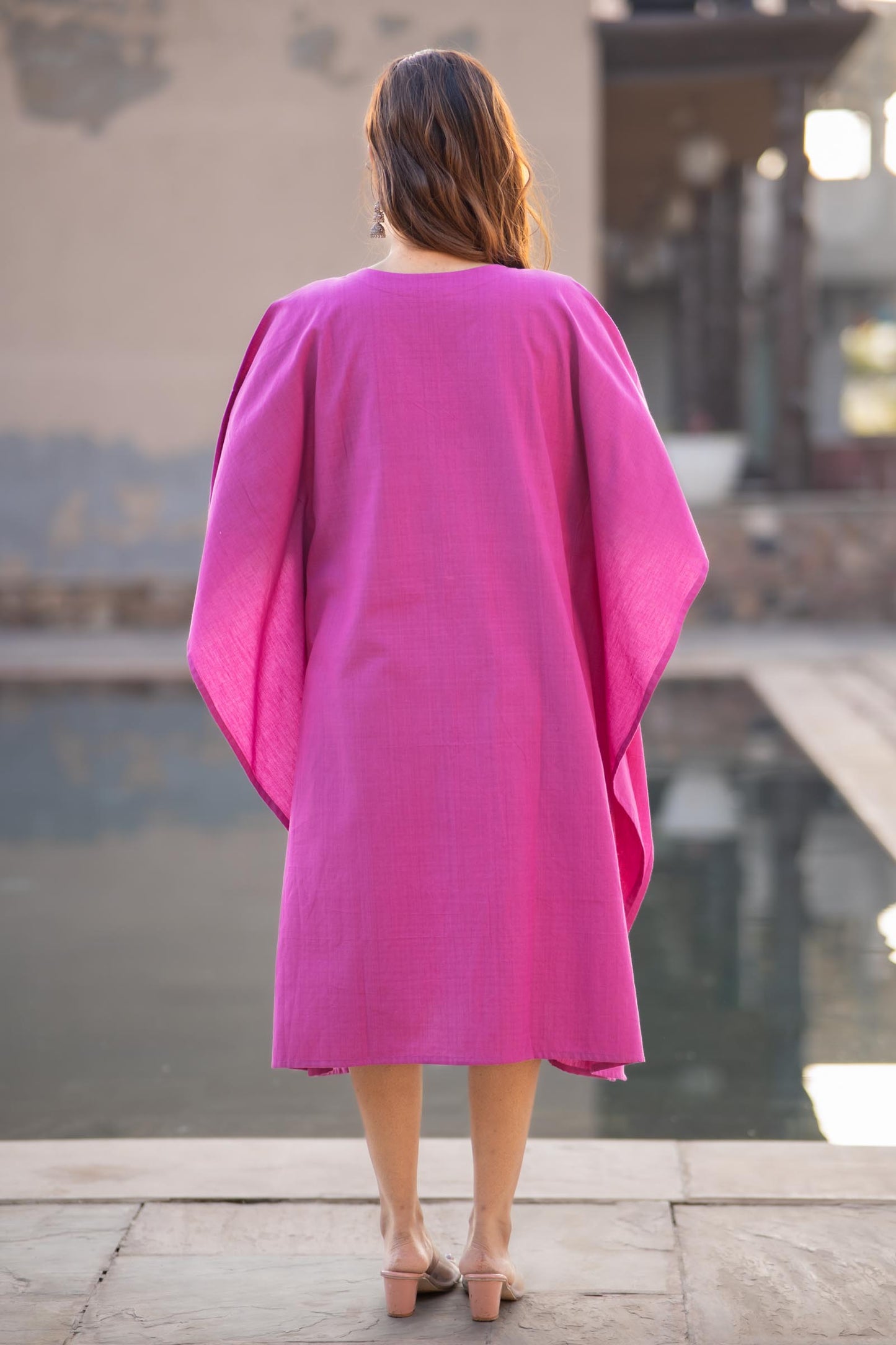 Purple khari cotton embroidered knee length kaftan dress is a must buy for handloom lovers.