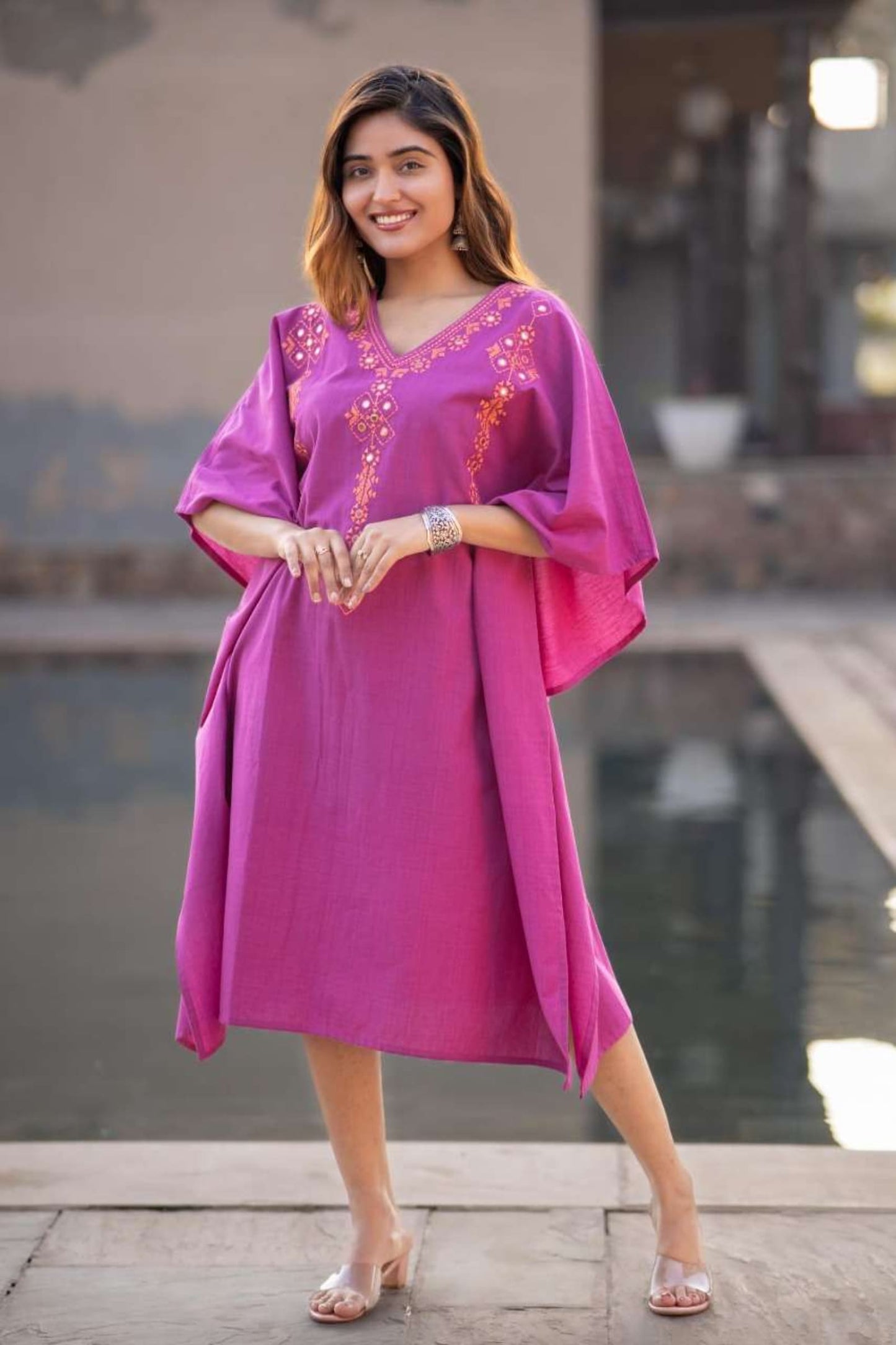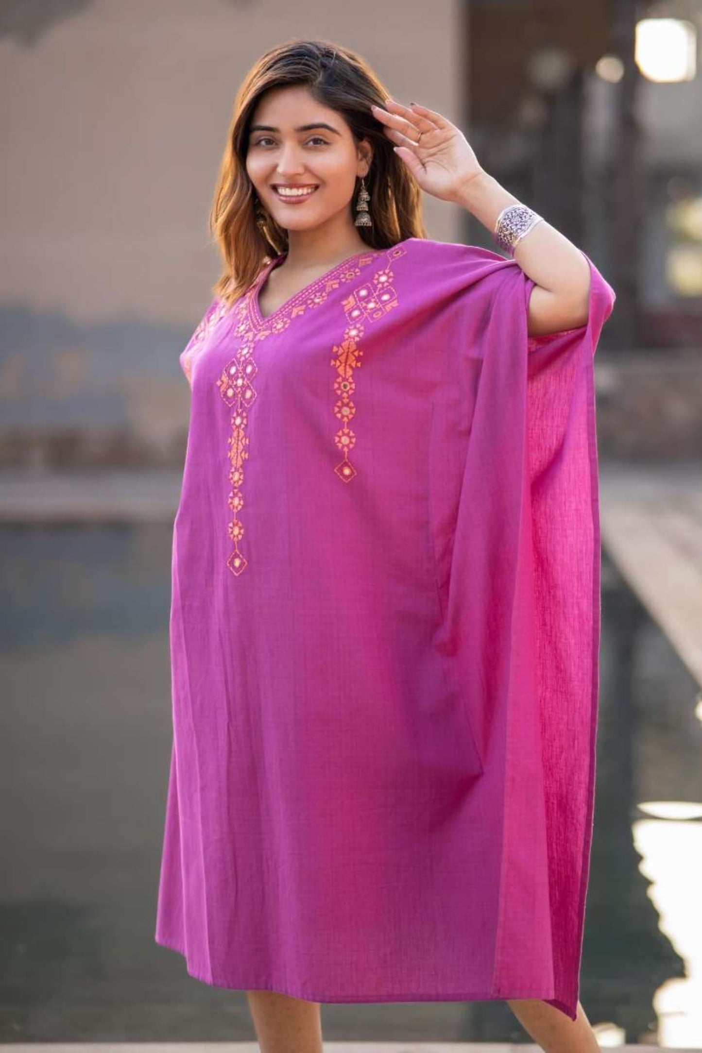 PURPLE KHARI COTTON EMBROIDERED KAFTAN-NVK440