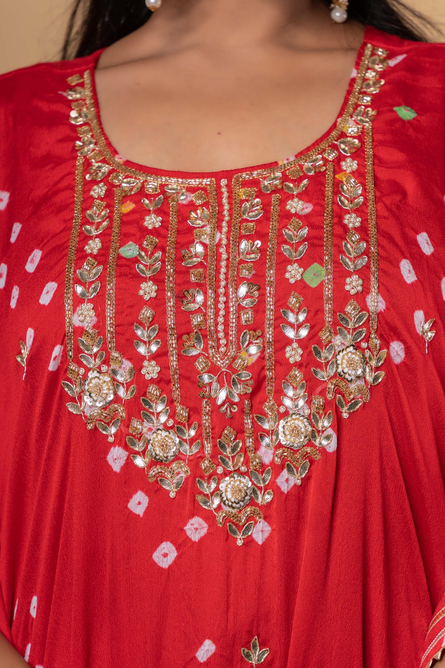 RED BANDHEJ HAND WORK KAFTAN-NVK320