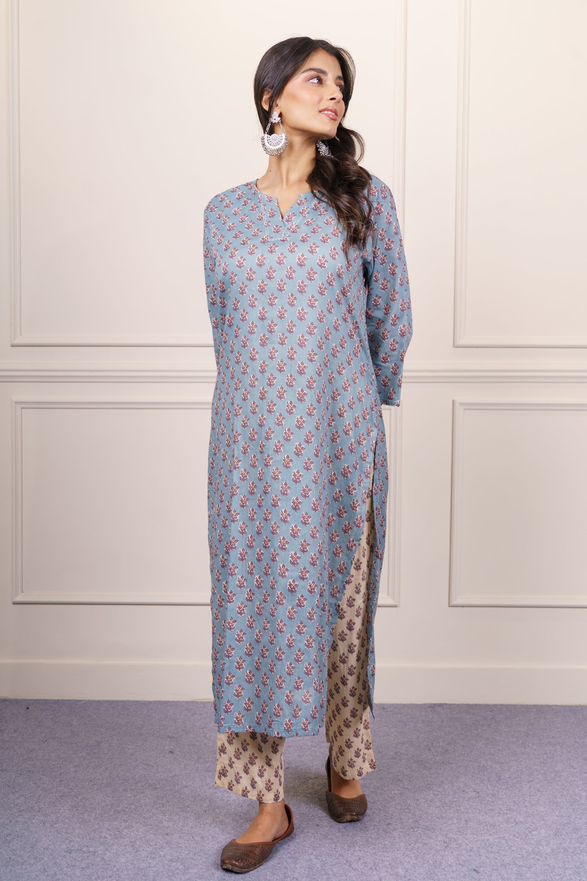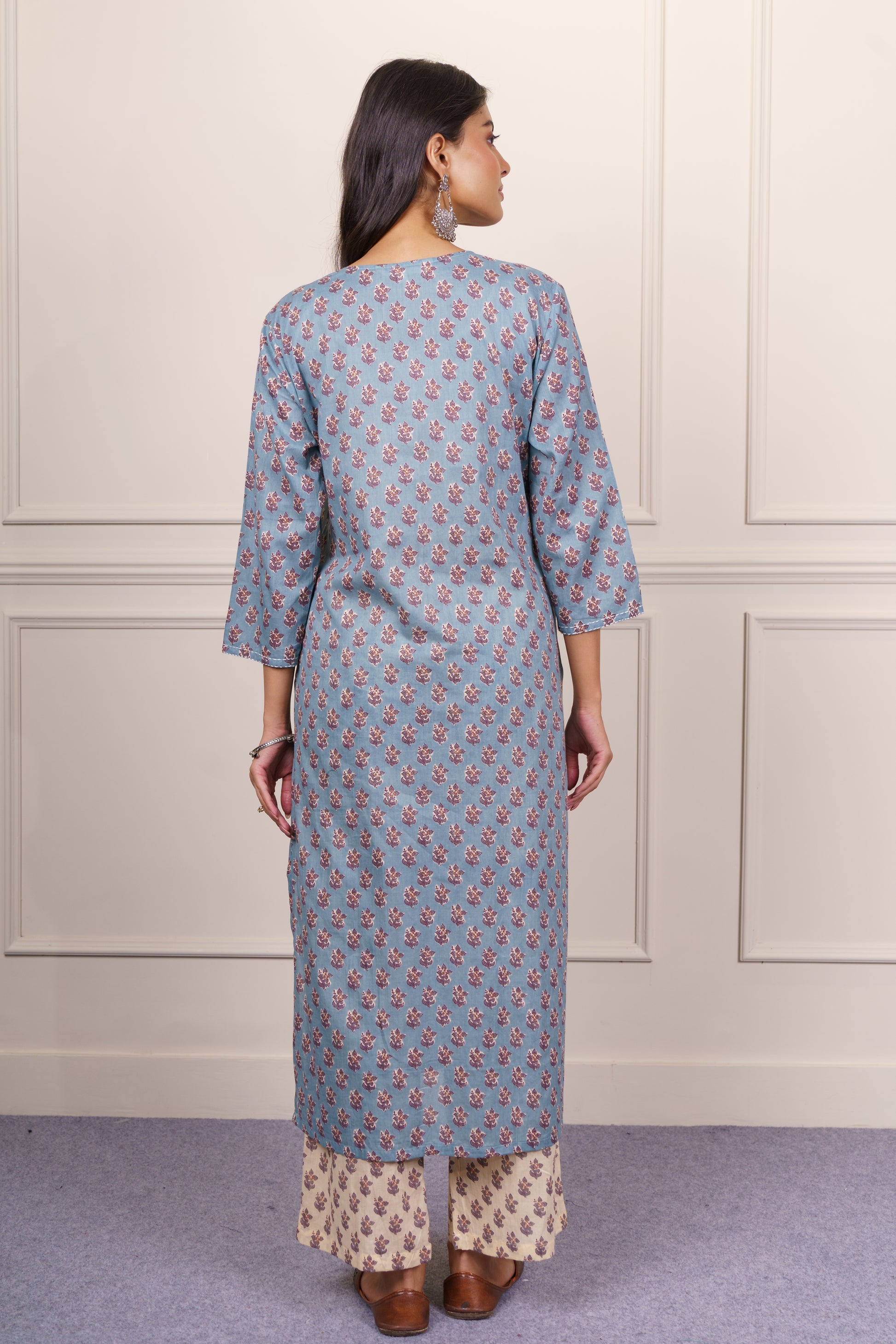 This elegant formal kurta is crafted from soft, breathable cotton, offering both style and comfort for all-day wear. The soothing blue floral print adds a refined touch, while the straight silhouette. Perfect for office or semi-formal occasions, this cotton kurta brings effortless grace to your everyday wardrobe.