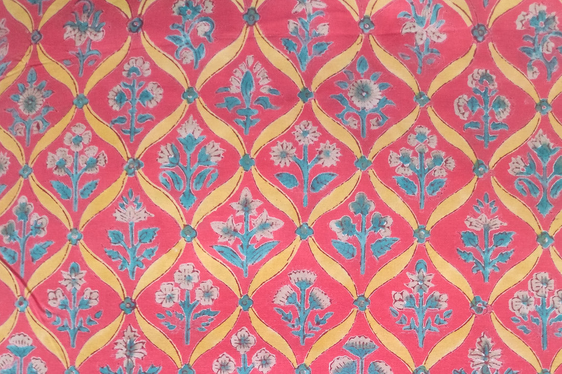 RED HAND BLOCK PRINTED COTTON FABRIC-HF6386